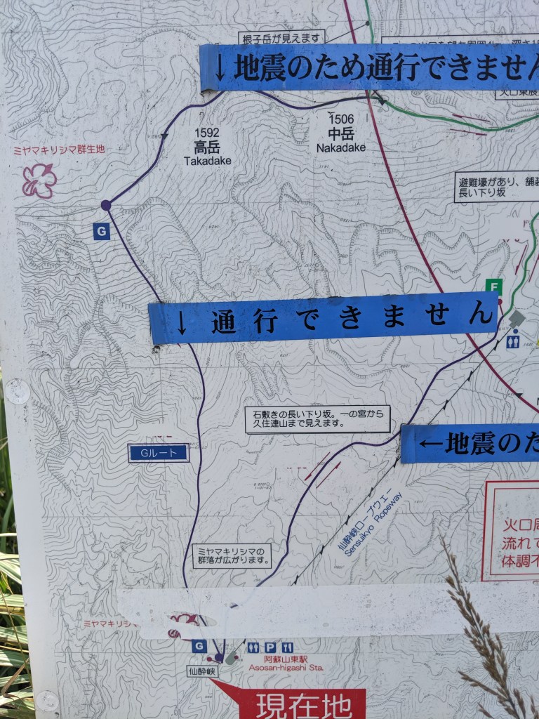 To get to the starting point of our climb, we drove to Sensuikyo Station.  The drive up to the starting point takes you along some beautiful hair-pin roads and you feel that you have landed on the set of Jurassic Park all of a sudden!  You will pass a damaged Buddhist Temple as you approach the empty car park.  The ropeway is no longer in use following the previous eruption in 2016 and it makes the area look apocalyptic.