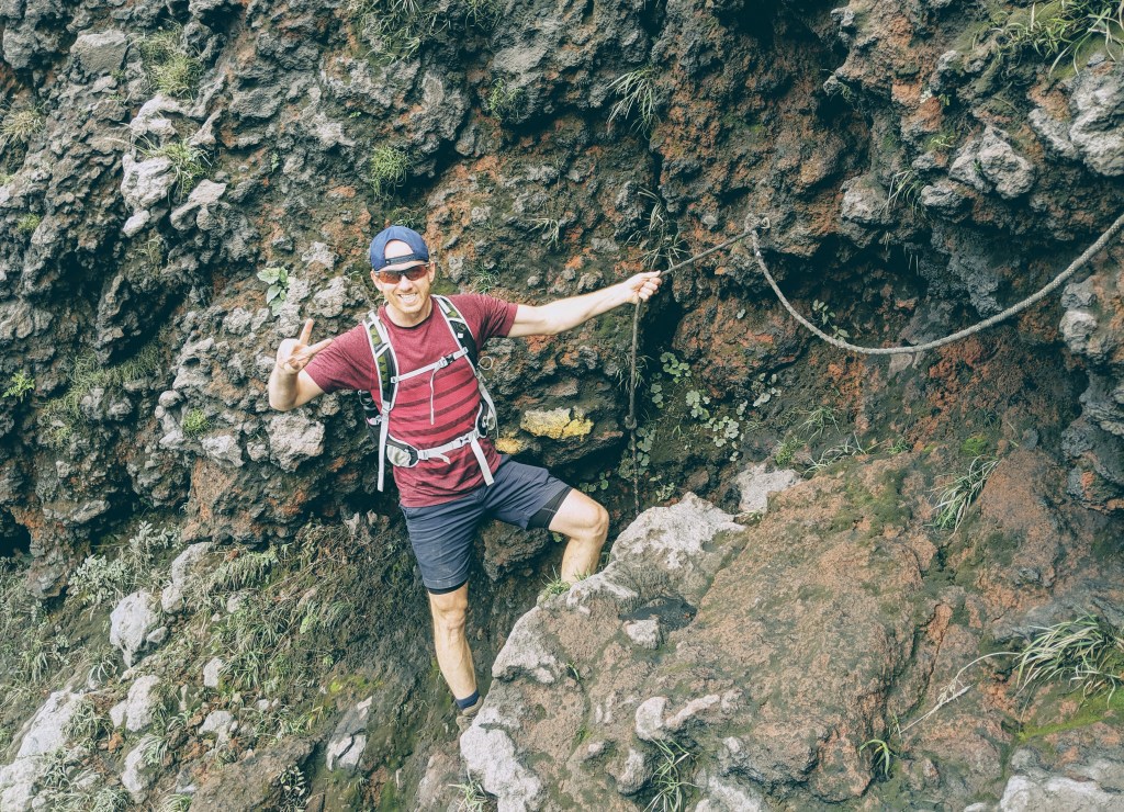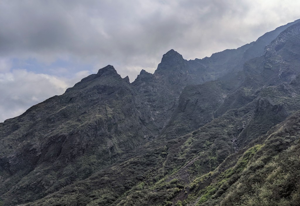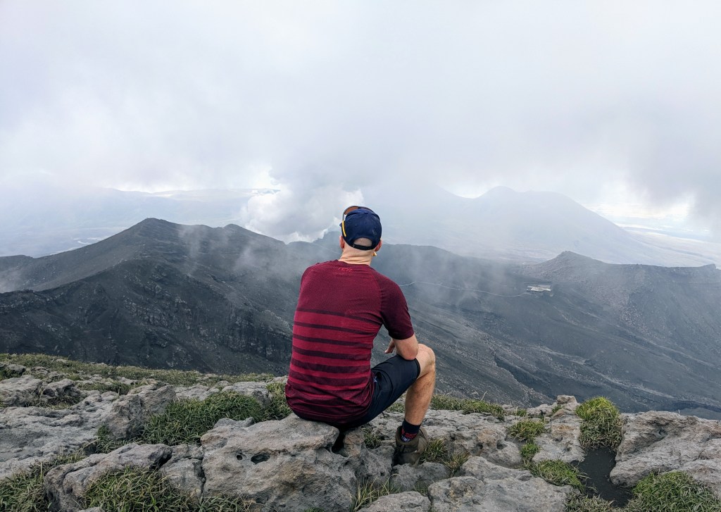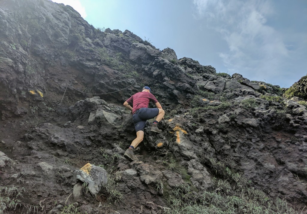 After battling through some overgrown bushes for 10 minutes, the path soon opens up on to volcanic boulders and ash covered rocks.  The path is steep, and I personally like to get very hands-on to avoid my knees taking all the strain.  If you are like me, be prepared to get very dirty from all the volcanic dust!  It took us around 2 hours to climb and scramble up to the summit of Take-Dake.  Whilst ascending, the clouds unfortunately rolled in so we didn’t have a constant view of the climb we had just completed.
